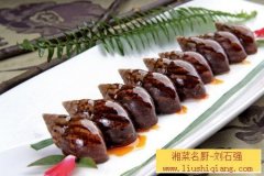 湘菜厨师网 刘石强湘菜厨师团队荣誉出品 湘菜厨师网浅谈 脆皮大肠。传统的脆皮大肠是热菜,其制作流程是大肠头制净刷脆皮水风干过油炸。我的这款菜将其改良成了凉菜上桌,过油...