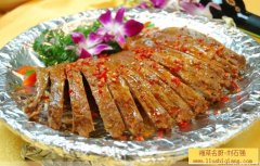 贵妃牛鞭 原料:牛鞭400克,黄花菜、红枣、枸杞、当归、香附、党参各2克。 调料:色拉油200克,食盐5克,味精3克,八角2克,桂皮2克,整干椒3克,葱3克,蕃茄沙司5克,生粉3克,香油...