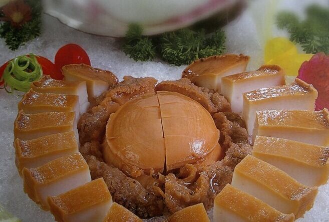 1、 首先将客人所点鲍鱼放在转盘上展示给客人看: