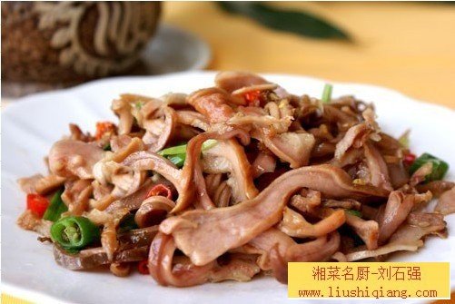 原料:腊猪肚160克、小红椒、大蒜、味精、鸡精、生抽