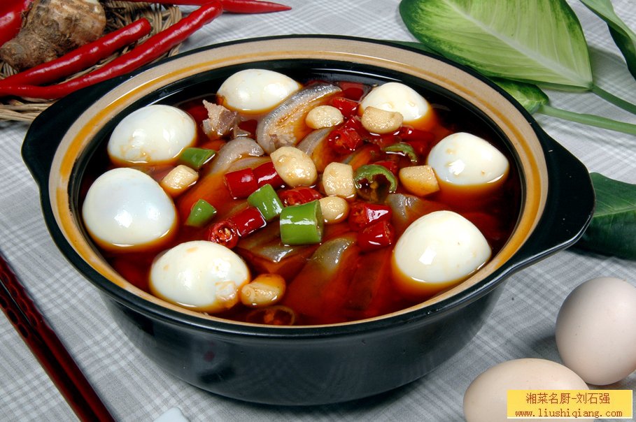 狗肉炖鸡蛋。小时候家里制作狗肉,大人们喜欢在里面加几个鸡蛋,说是可以防头痛,在湖南农村都有这种习惯,有没有作用不知道,但味道很不错,留下了深刻的映象。