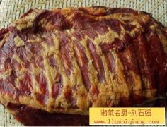 豆辣乡里腊肉 【主料】: 腊肉500克 【辅料】: 豆豉30克 干辣椒20克 【做法】: 1、将腊肉清洗干净,锅内放水煮熟 2、将煮好的腊肉改切成片,摆入盘中,加入豆豉、干辣椒,上笼蒸...